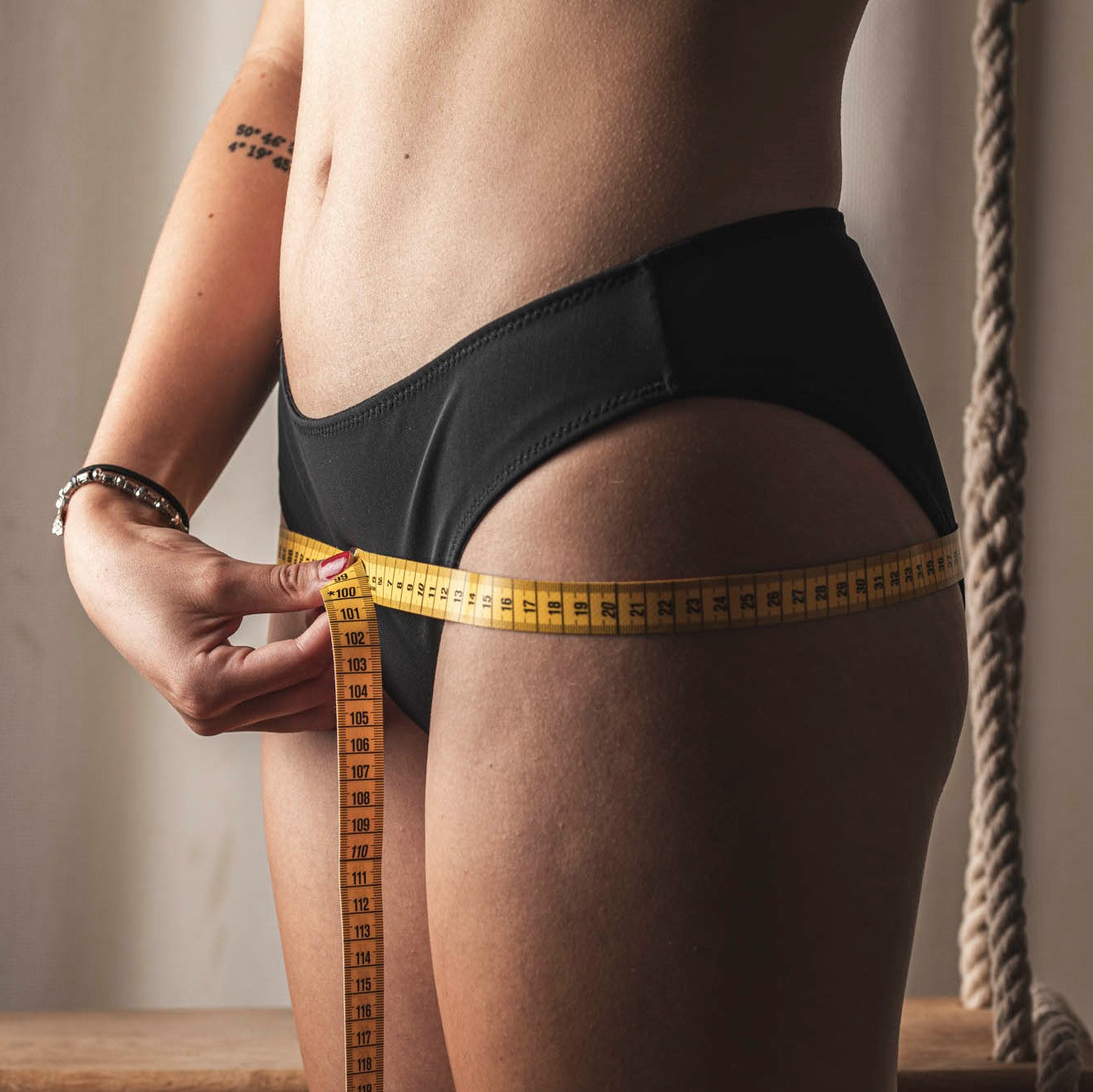 Placez le mètre ruban au niveau le plus ample de vos hanches sans le serrer.
