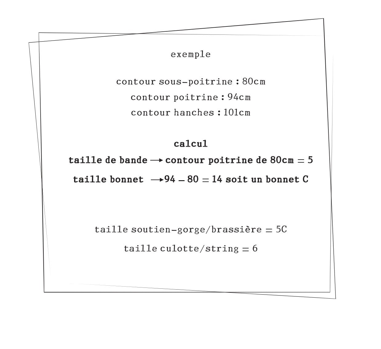 Pour trouver votre taille de bonnet, il vous suffit de soustraire les deux résultats obtenus.